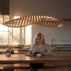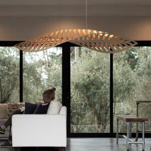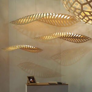 Đèn chùm gỗ xương cá độc đáo trang trí nhà hàng