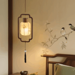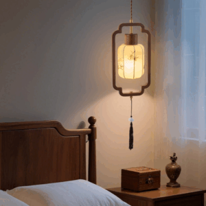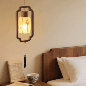 Đèn gỗ thả Quang Lạc trang trí phòng ngủ – Xưởng Đèn Gỗ
