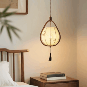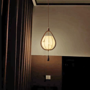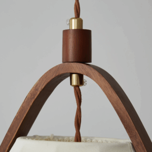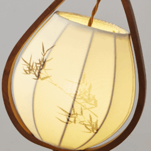 Đèn Yên Vân được lấy cảm hứng từ những chiếc đèn lồng cổ phương Đông, với phom dáng bầu tròn nhẹ nhàng, tựa như giọt sương sớm đang khẽ đọng trên cành trúc. Khung gỗ tự nhiên được xử lý tỉ mỉ, uốn cong mềm mại bao bọc lấy chao đèn vải, tạo nên sự kết hợp hài hòa giữa nét mộc mạc và sự thanh lịch.