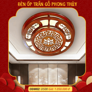 Đèn ốp trần gỗ trang trí phòng thờ, nhà hàng phong thủy 2025